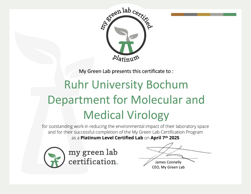 The Department of Molecular & Medical Virology, headed by Prof. Steinmann since April 2018, is part of the Medical Faculty of the Ruhr-University Bochum. With lectures, seminars and practical courses in the field of virology, the department is committed to teaching medical and natural scientists.